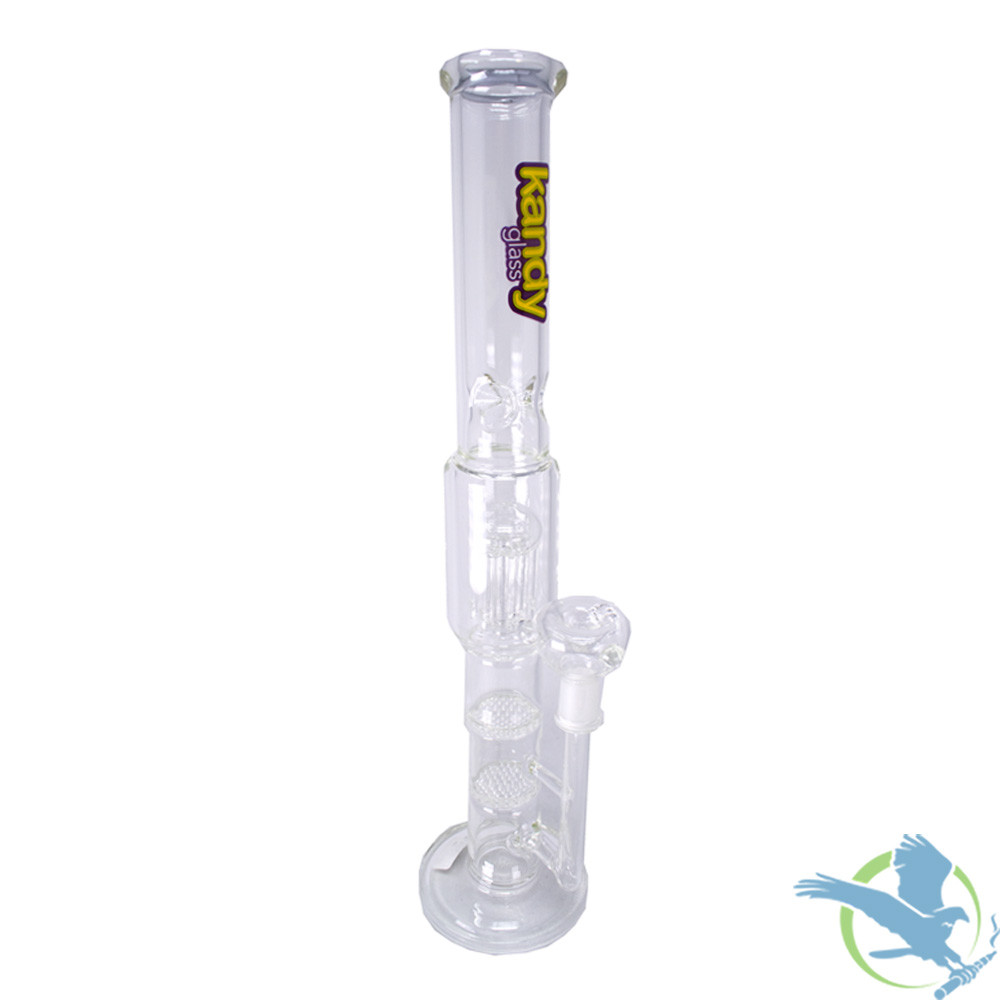 Kandy Smoke Glass Water Pipe Tube Base Design With Ice Catcher Tree Perc Dual Honeycomb Percs 675 Grams 15 Inches Glass Pipes Accessories Midwest Distribution