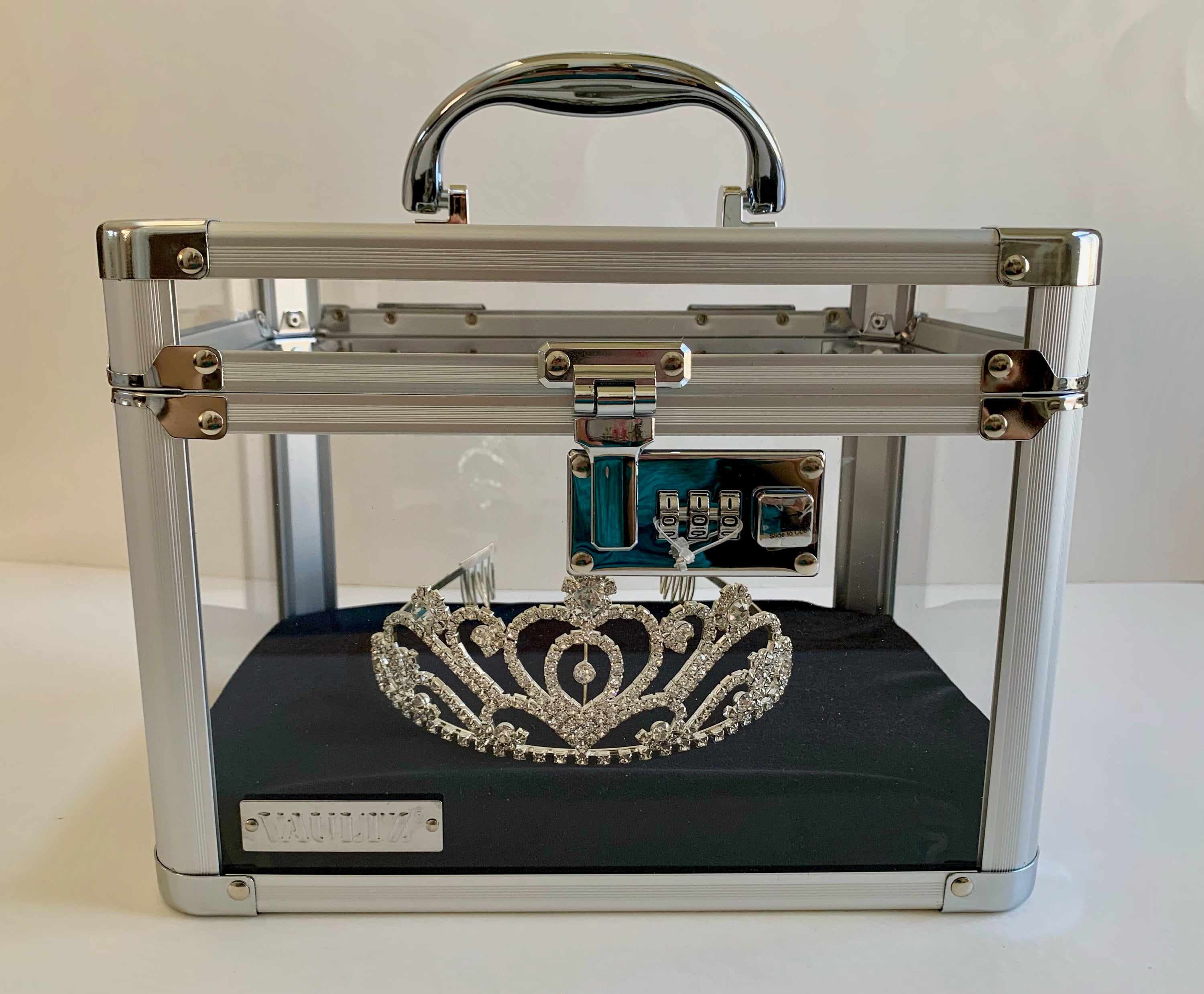 Amazon Com The Traveling Miss Pageant Crown Box Display Tiara And Sash Holder Carrying Travel Case With Handle Storage Cases For Pageants And Jewelry Black And Gold Beauty Personal Care